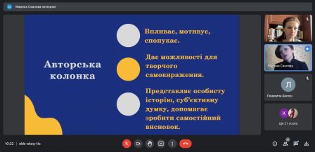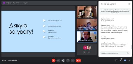 Декан факультету Оксана Кирильчук і завідувач кафедри журналістики Світлана Семенко звернули увагу аудиторії на важливість безперервного підвищення рівня медіаграмотності, оскільки відповідальність в інформаційному просторі кожного сприятиме нашій перемозі.