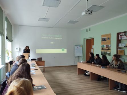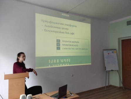Голова громадської організації ЗМІСТ Аліса Куценко ознайомила студентів із інструментами платформи ЗМІСТ, які можна використовувати для успішної співпраці та впровадження позитивних змін у місті та сприянню української перемоги: краудфадингова платформа, аналітичний центр, комунікаційна агенція, книгарня-кав’ярня, волонтерські ініціативи.