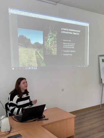 У межах екоінтенсиву учасники мали змогу взяти участь у майстер-класі студентки 4 курсу, журналістки інтернет-видання «Полтавська хвиля» Євгенії Мазниці «Як готувати журналістські проєкти на екологічну проблематику». Спікера запропонувала детальний алгоритм роботи журналістів зі збору та аналізу матеріалів на актуальну тему, поділилася рекомендаціями про взаємодію із джерелами інформації, звернула увагу на проблеми при відборі візуального супроводу.