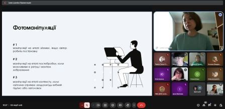 Окрема увагу тренерка приділила феномену фотографії як носія істини та її здатності впливати на довіру аудиторії. Учасники розглянули різні види фотоманіпуляцій: від постановочних знімків і ретуші до навмисного викривлення контексту через неправдиві підписи та сучасні deepfake-технології. На прикладах реальних фотофейків учасники навчилися визначати, як саме змінюється сприйняття зображення залежно від ракурсу, кадрування чи текстового супроводу.